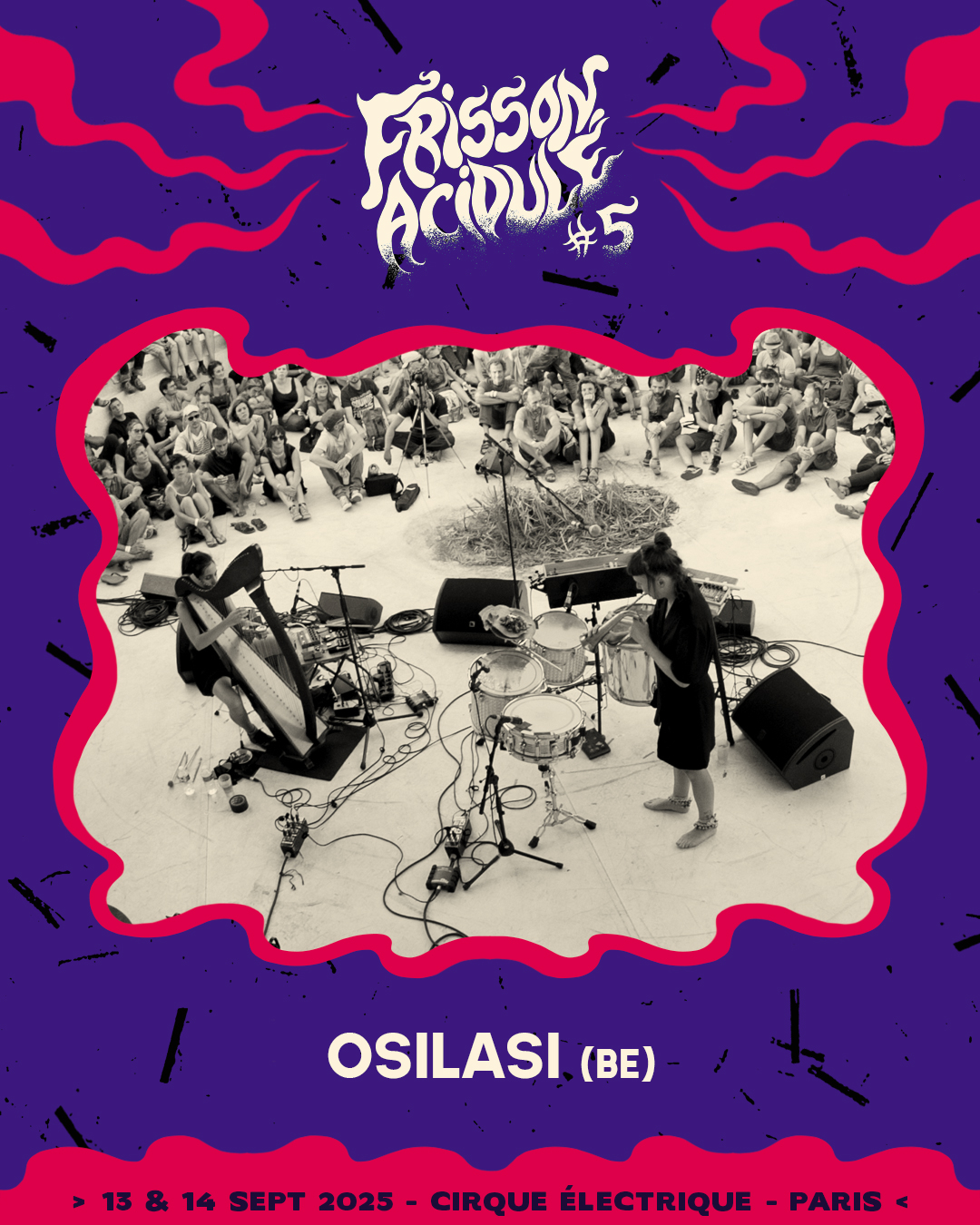 On est heureux d’organiser la 5ème édition de notre festival FRISSON ACIDULÉ les Samedi 13 et Dimanche 14 Septembre 2023 au Cirque Électrique à Paris (Porte des lilas), chouette lieu alternatif où il y aura des concerts (25 groupes/artistes en alternance sur 3 scènes), des performances, santds/expos, de la sérigraphie et de la cuisine…
