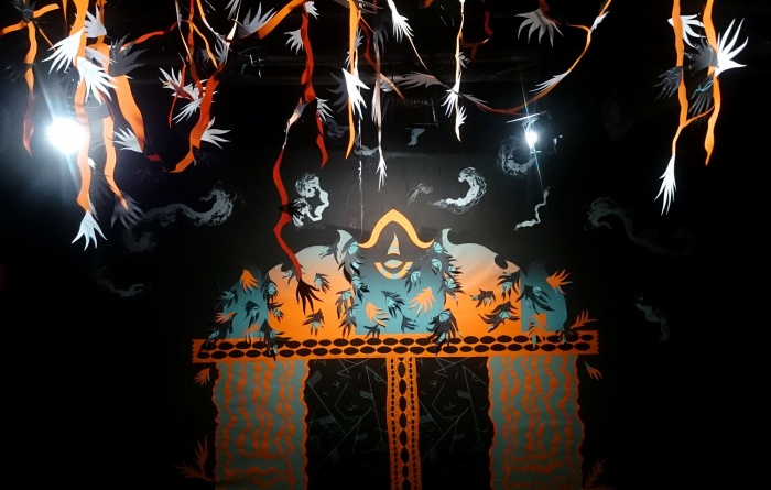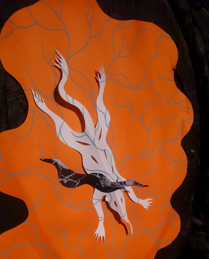 Screenprinted silk paper, cut and past, wood